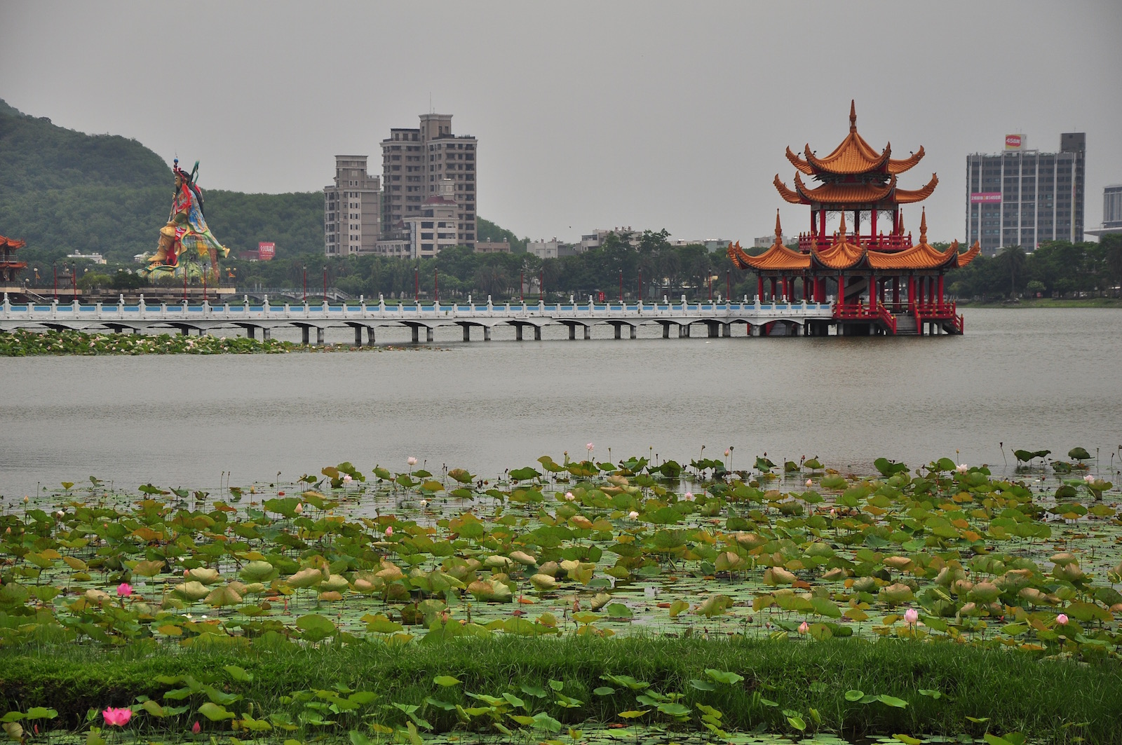 Kaohsiung foi uma agradável surpresa! SabĂamos alguma coisa sobre o Lotus Pond (aqui), mas pouco mais. Talvez a principal razĂŁo para termos gostado tanto de Kaohsiung foram as saudades de cidade. Adoramos a praia, mas depois de um mĂŞs de mar e areia já nos apetecia estar de volta ao caos de uma cidade, das luzes, de muitas coisas para fazer e ver! Tivemos uma experiĂŞncia mesmo engraçada assim que aterramos em Taiwan, as casas de banho! As latrinas, muito comuns aqui, sĂŁo uma novidade para os miĂşdos e a logĂstica de ir Ă casa de banho Ă© um desafio. Ao principio nĂŁo queriam a creditar, achavam que estávamos a gozar (vejam o filme no facebook) e perguntaram "quem Ă© que enterrou a retrete?". Rapidamente passou a ser normal e uma coisa sobre a qual rimos bastante. A dada altura acho que eles atĂ© preferiam as latrinas. Atenção, quando forem com os miĂşdos a uma latrina esvaziem os bolsos, tudo o que cair no chĂŁo (tal Ă© o nojo) nĂŁo vĂŁo querer de volta!