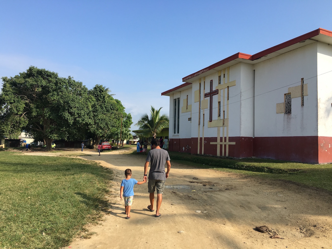 This country is getting better and better! We moved from Port Vila to Espiritu Santo, what a great place! We booked the 2 first nights just to have a feel for the place and decide where to stay for longer. We stayed in Village du Santo, it was perfect for 2 nights but not good for more, in our case, since we were not planing to do any tours at the beginning and to spend the entire time there was a little “small” for the kids. There was not enough space to run around. It had a small pool but not a nice area to seat and just relax. It was not in the center but just a short, and very cheap, taxi ride. It had no access to the beach. People were very nice and they were great with the kids. On the first day we went to the beach in front of the resort next door and we automatically knew we wanted to move there. Beachfront resort has a beautiful black sandy beach with paddle boards and kayaks, we like that! There’s a big pool and huge grass in front for kids to use all their energy. The people are, once again, incredibly nice. The days around here are spent between the pool and the beach, not doing much. We are doing a little of “studying” everyday with Francisco and trying to make Teresinha paint inside the lines. We headed a couple of times to the market to eat on the food boots. Nice food for a ridiculous price, each portion, cooked in front of us, cost around 2,5 Euros! One morning Pedro left early to dive and we met him at Million Dollar Point, in between dives. We headed back home on the back of a pick up, it was an excitement for the kids!