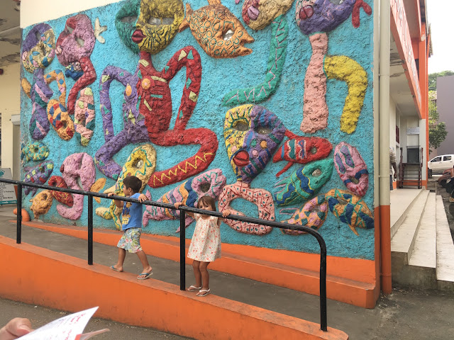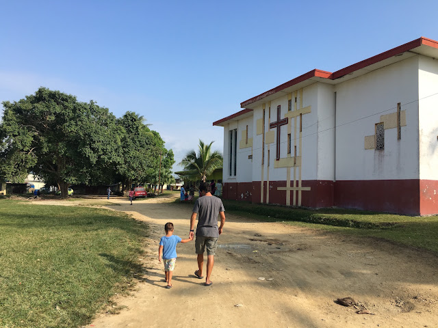 Estamos a gostar cada vez mais deste paĂs! Mudamo-nos de Port Vila para a ilha de Espiritu Santo, que sĂtio espectacular! Marcamos as duas primeiras noites apenas para ter uma ideia do sĂtio e depois decidirmos onde ficar mais tempo. Ficamos no Village du Santo perfeito para 2 noites mas nĂŁo para mais, no nosso caso, pois nĂŁo vamos fazer nenhum passeio e passar o tempo todo por ali tornava-se um bocadinho "pequeno" para os miĂşdos. NĂŁo havia espaço para eles correrem. Tinha uma piscina pequena e nĂŁo tinha nenhum sĂtio Ă volta para estar. NĂŁo era no centro, mas a uma viagem curta e barata de taxi. NĂŁo tinha acesso a praia. As pessoas eram muito simpáticas e Ăłptimas com os miĂşdos. Logo no primeiro dia fomos Ă praia em frente ao hotel do lado e imediatamente soubemos que nos querĂamos mudar para lá. O Beachfront Resort tem uma praia linda de areia preta, com canoas e pranchas de stand up paddle, e nĂłs gostamos disso! Tem uma piscina grande com uma relva enorme Ă frente onde os miĂşdos podem correr e gastar a energia. As pessoas sĂŁo, uma vez mais, muito simpáticas. Os dias por aqui tĂŞm sido entre a praia e a piscina, sem fazer muito. Temos estudado todos os dias um bocadinho com o Francisco e ensinar a Teresinha a pintar dentro das linhas. Fomos umas quantas vezes jantar ao mercado. Comida porreira por um preço ridĂculo, 2,5 euros por prato e as doses sĂŁo grandes por isso nem um para cada pedimos.